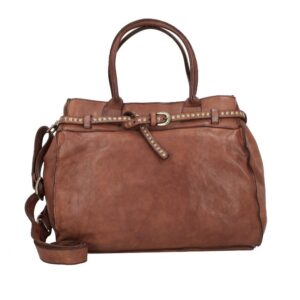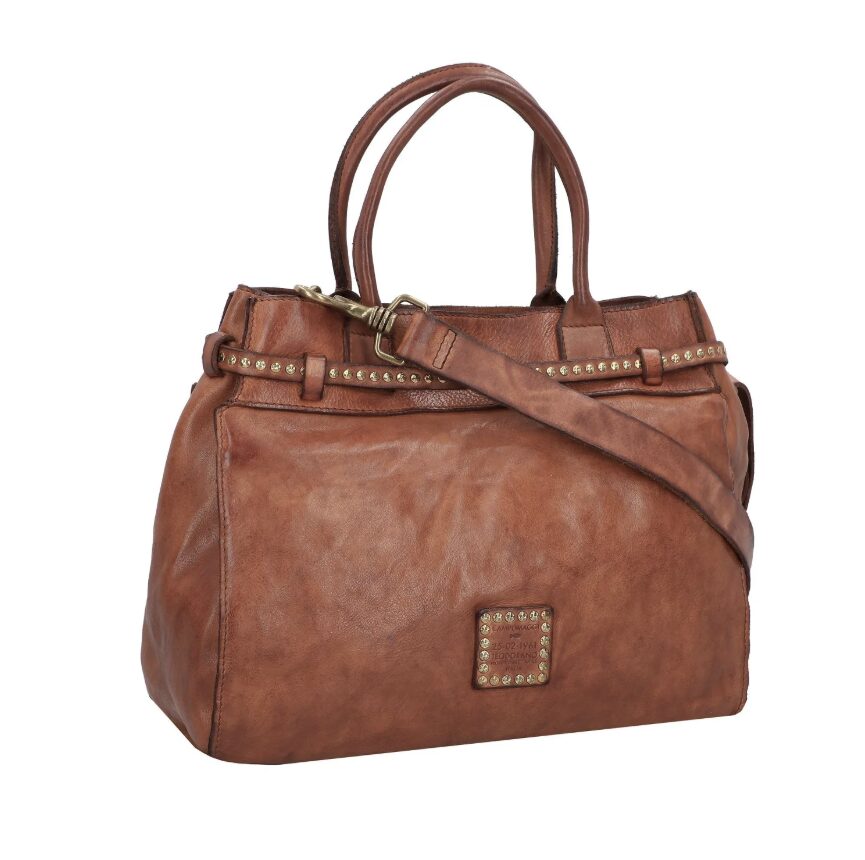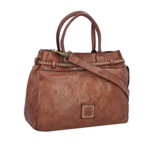 Kura boodschappentas van cognac-kleurig, geverfd rundleer met klinknagels