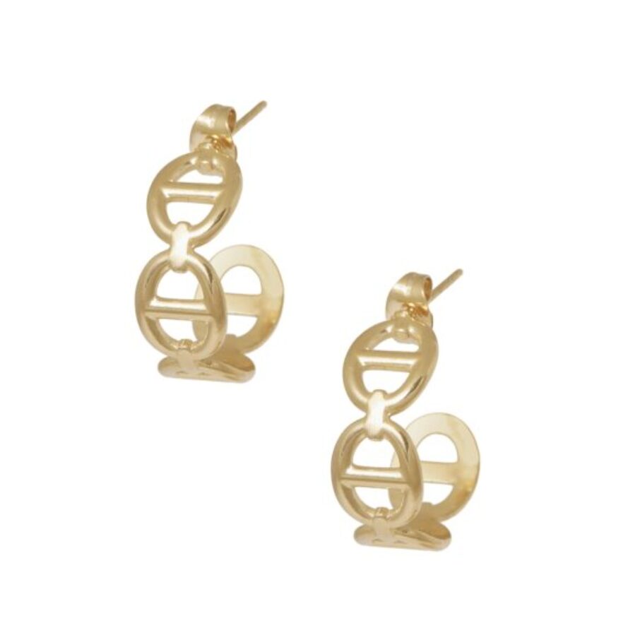 Opengewerkte vergulde creolen. Goldplated op longlasting stainless steel. Length is 2 cm.