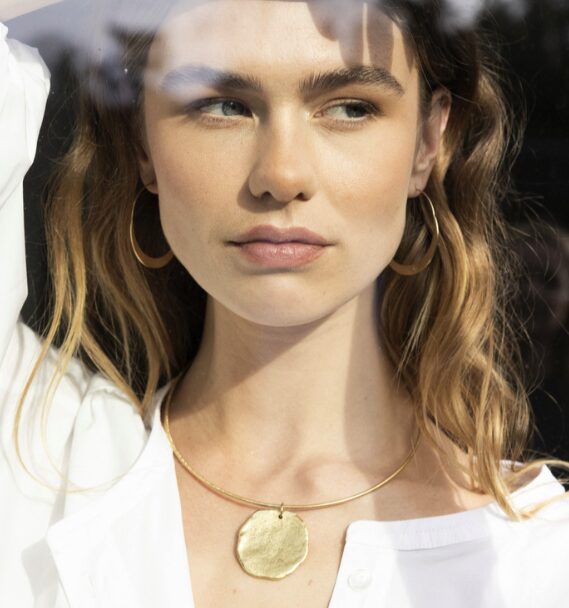 Ellen Beekmans – Draad Choker – met Matte Organische munt XL