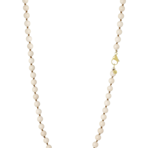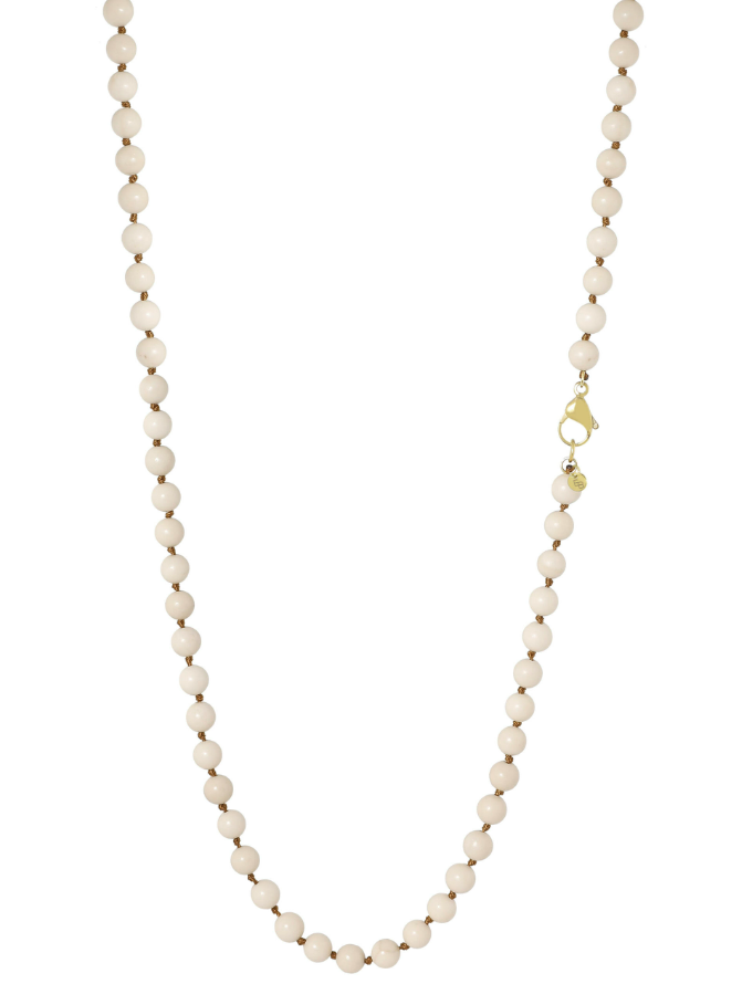 Lange gemstone ketting in off-white. De ketting heeft een lengte van 36 inch (90 cm) en is afgewerkt met een slot en een logo tag. De ronde gemstones hebben een diameter van 8 mm. Perfect om los te dragen of te layeren met andere kettingen.