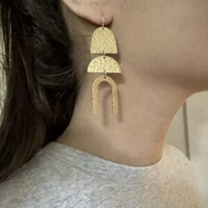 Lange gehamerde oorbellen. Verguld op brass. In lengte ca 7cm. De oorbellen zijn lekker licht.