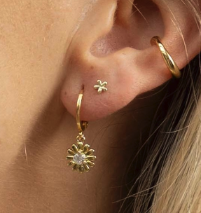 Oorstekers met een klein verguld bloemetje. Verguld op longlasting stainless steel.