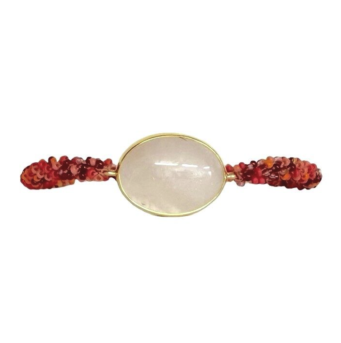 Kleurrijke kralenarmband met een grote halfedelsteen en details van 14-karaats verguld messing.