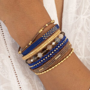 Onze handgeweven armband is ontworpen met kleine vergulde dooskralen. Draag alleen of als laagje als stapel.