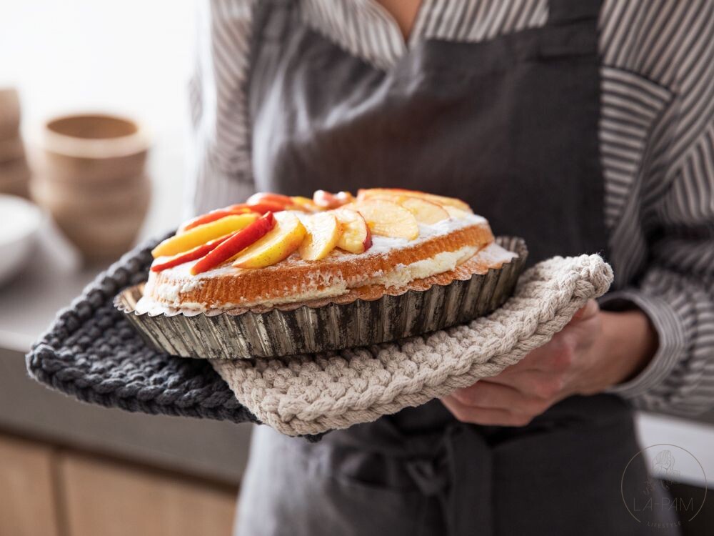 Stoere gebreide pannenlap/onderzetter van het merk Leeff. Mooi voor in een landelijke keuken. Deze gebreide pannenlap beschermt je handen tegen de hitte maar hij kan ook gebruikt worden als pannen onderzetter. Aan de pannenlap/onderzetter zit een lusje waar je hem aan op kunt hangen.