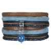PimpsandPearls – Leren Dubbele Armband – Bruin Blauw Floral