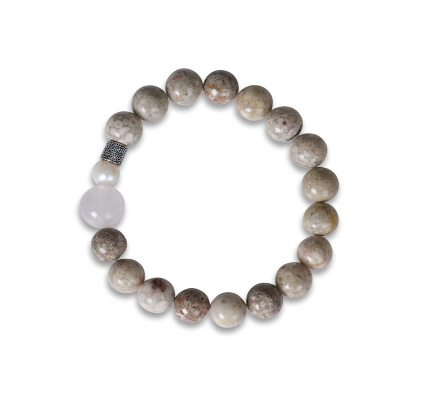Rozenkwarts is de edelsteen van de liefde en ook van een nieuwe begin. De steen bevordert de intuïtie en heeft een kalmerende werking op het gevoelsleven. Mede door de prachtige Barok parel heeft deze armband een extra luxe uitstraling. Deze armband is perfect te combineren met de Mala kettingen uit deze collectie.