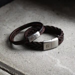 Onze dubbele armband heeft het uiterlijk van een tweedelige sieradenset zonder de moeizame taak van het koppelen. De tweevoudige armband is handgemaakt van fijn buffelleer en heeft een gevlochten band de andere leren band lijkt van ruw touw, maar is real leather!