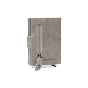 Model Prague is voorzien van een Antique Buff Crumbled leren hoes. Deze sluit met een omslag drukknoopsluiting en is voorzien van één insteek-vak, twee pashouders en een ritsvakje aan de achterkant voor kleingeld. Kortom, een veilige en praktische manier voor het meenemen en opbergen van je pasjes.