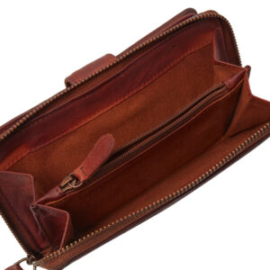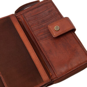 Praktische leren portemonnee met een vintage uitstraling. Deze leren portemonnee biedt ruimte aan 17 pasjes, briefgeld en een vakje voor kleingeld met ritssluiting. Verder is deze portemonnee voorzien van een vakje met transparant venster en RFID beveiliging.