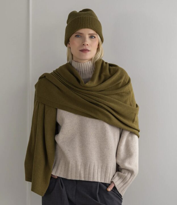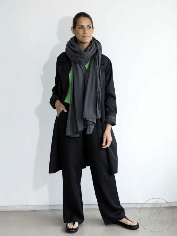 Tip: De sjaal kan je heerlijk als omslagdoek dragen voor in het vliegtuig.